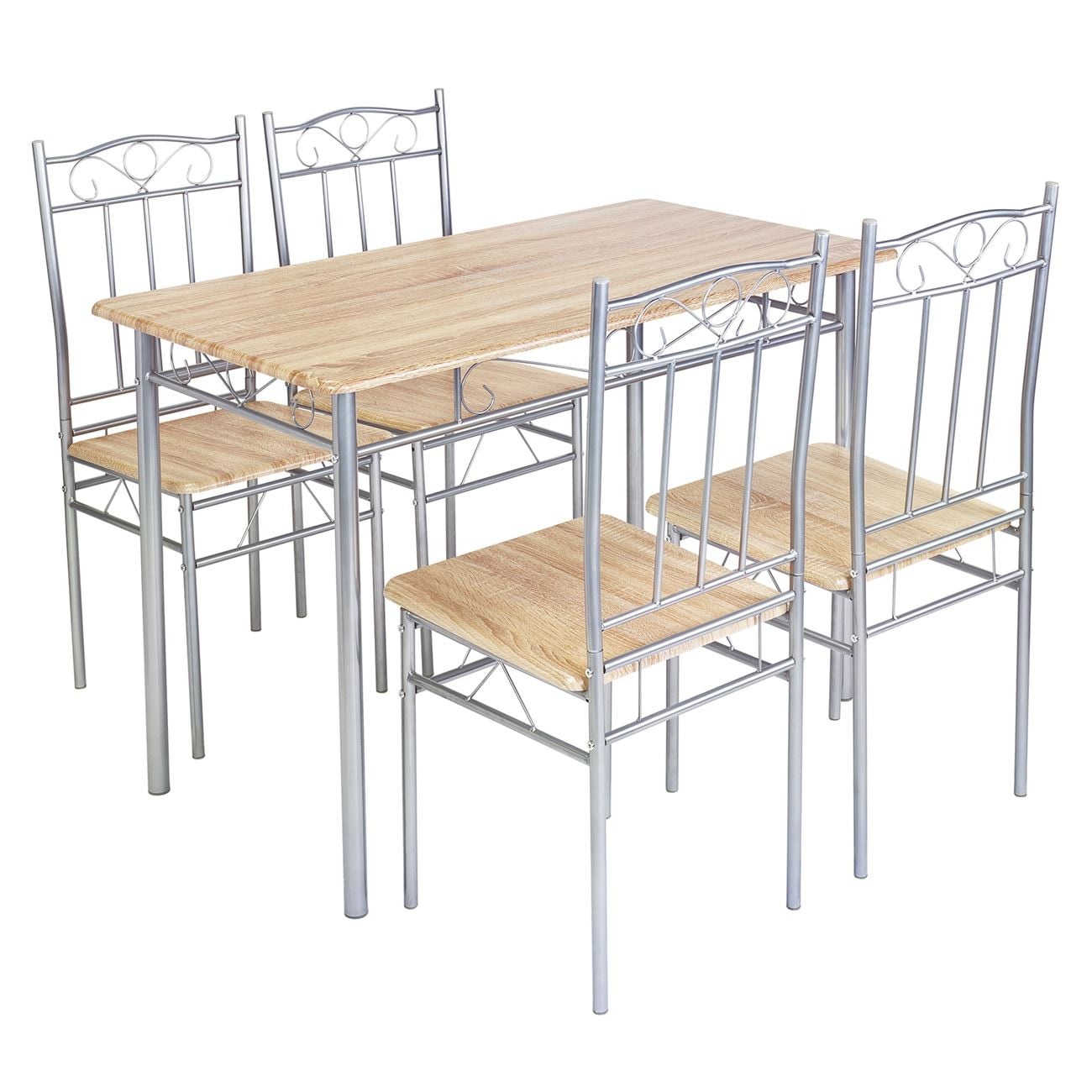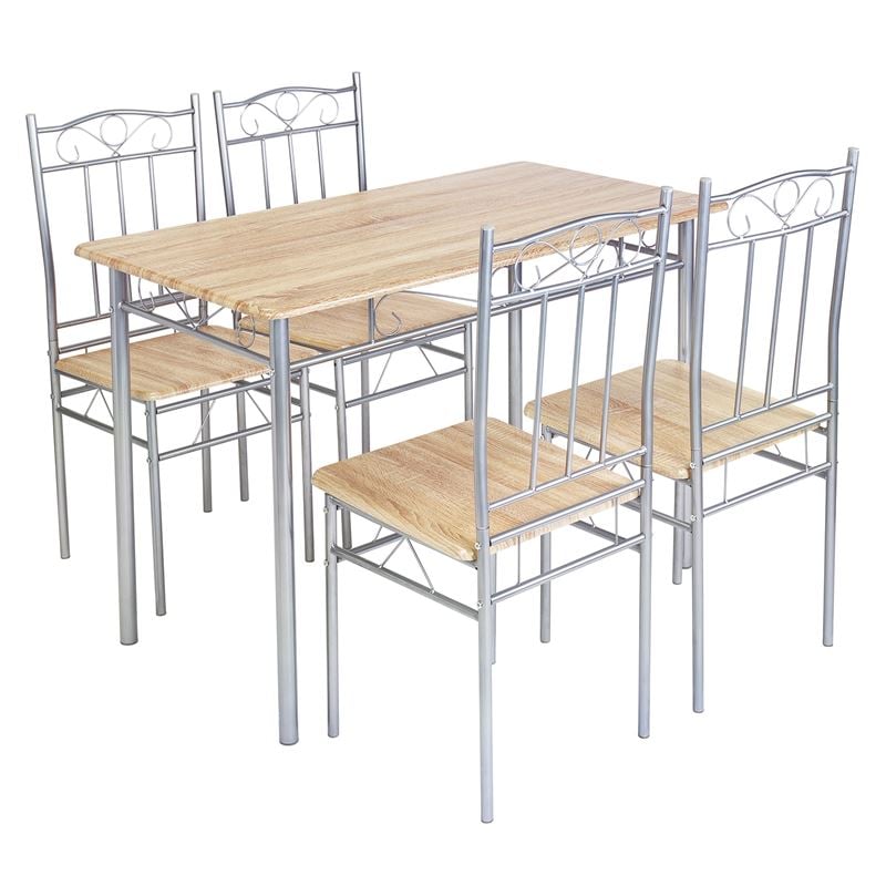 LUTON Set Τραπεζαρία Σαλονιού Κουζίνας: Τραπέζι + 4 Καρέκλες Μέταλλο Βαφή Silver, Sonoma