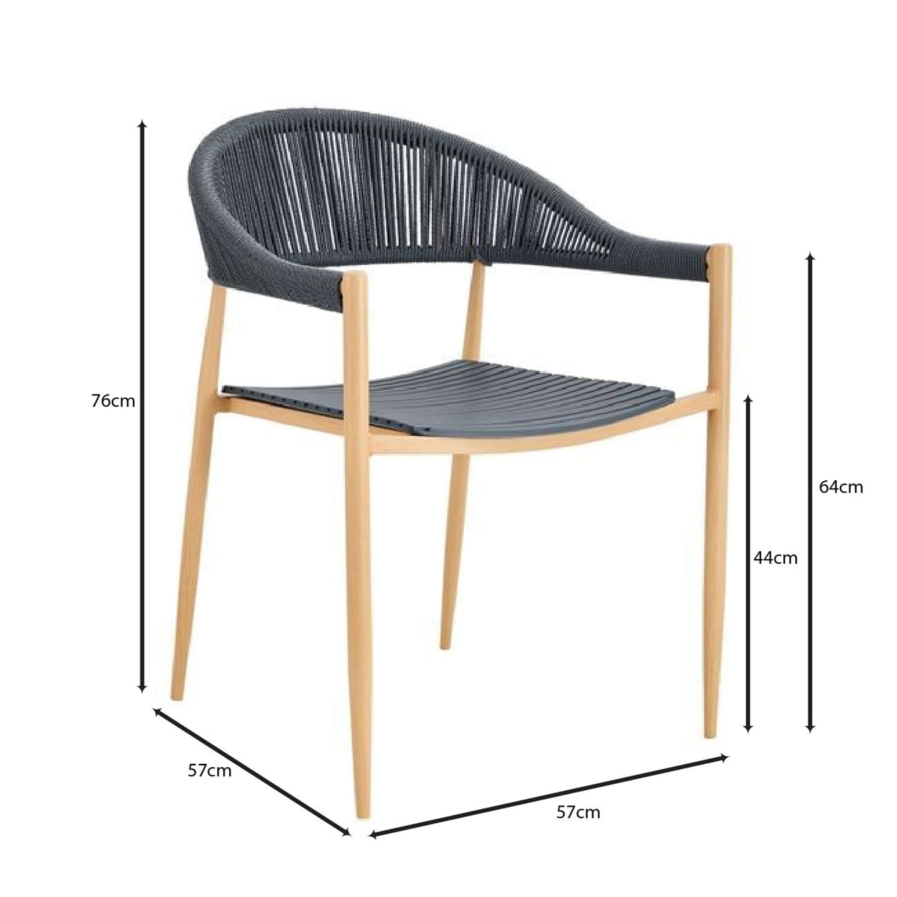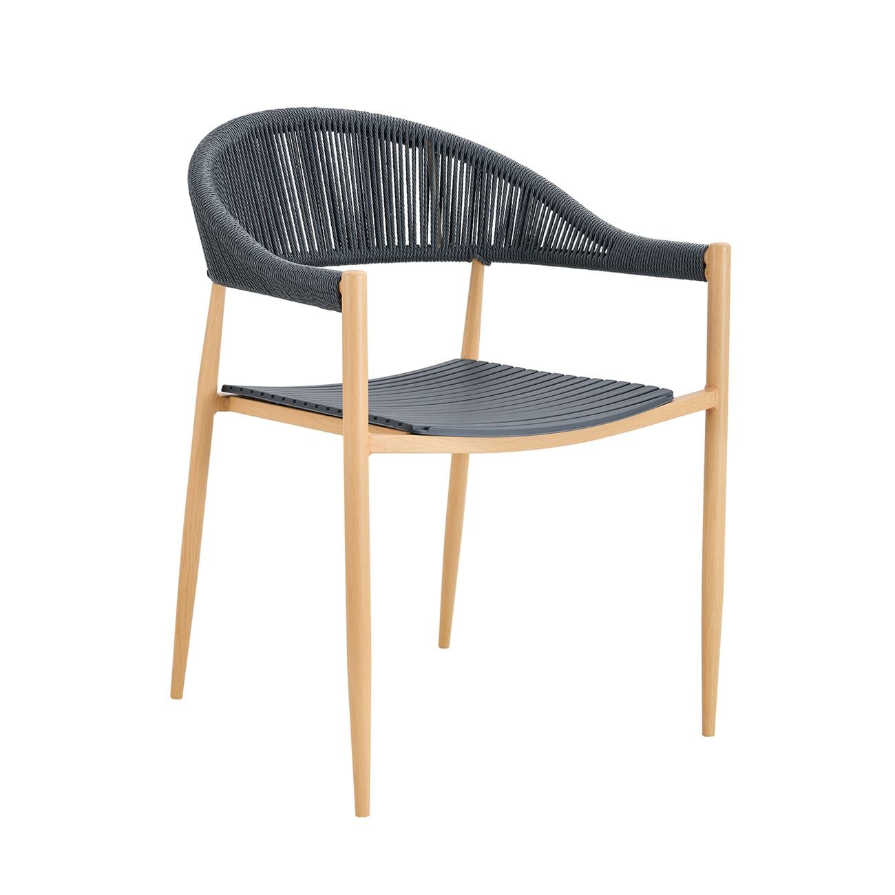 MALTA Πολυθρόνα Στοιβαζόμενη, Μέταλλο Βαφή Φυσικό, PP-UV Γκρι, Rope Wicker Γκρι