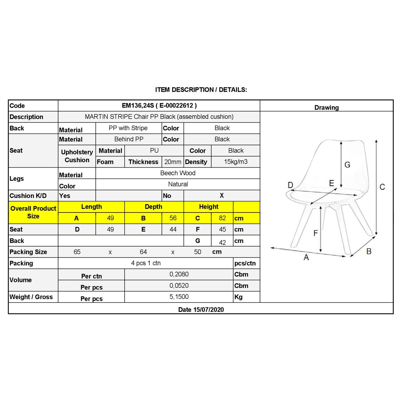 ΕΜ136,24S MARTIN STRIPE Καρέκλα PP Μαύρο (Ξύλινο πόδι-Μοντ/νη ταπετσαρία)