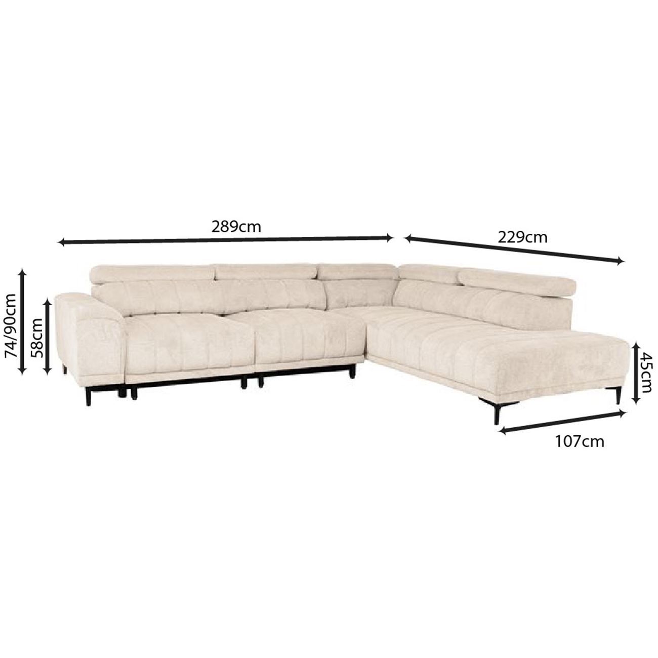289x229x107cm H.74/90cm
