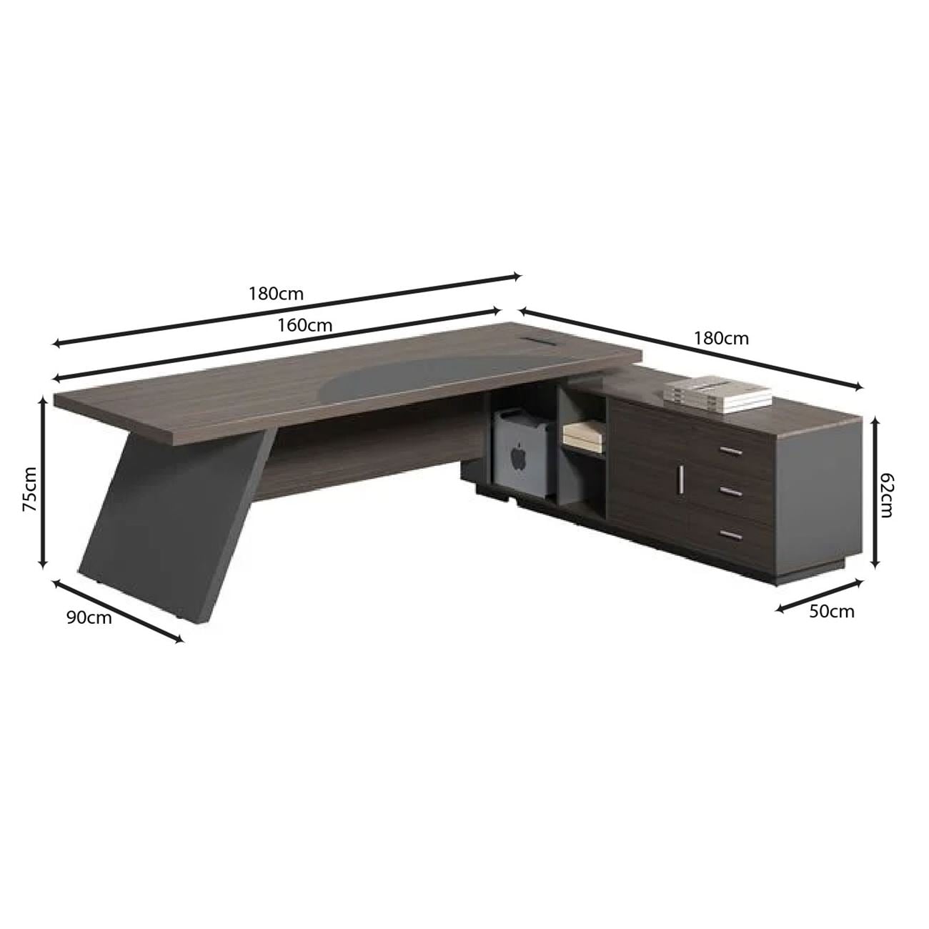 ΕΟ925,R MASTER Γραφείο Δεξιά Γωνία 180x180cm Grey Walnut