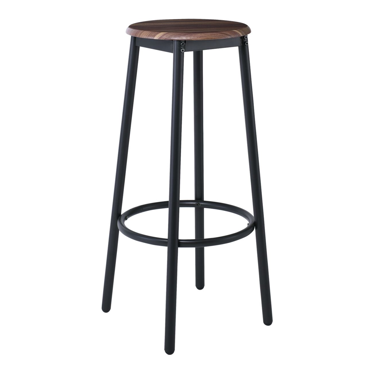MAYER Σκαμπό BAR, Μέταλλο Βαφή Ανθρακί, Κάθισμα Απόχρωση Καρυδί