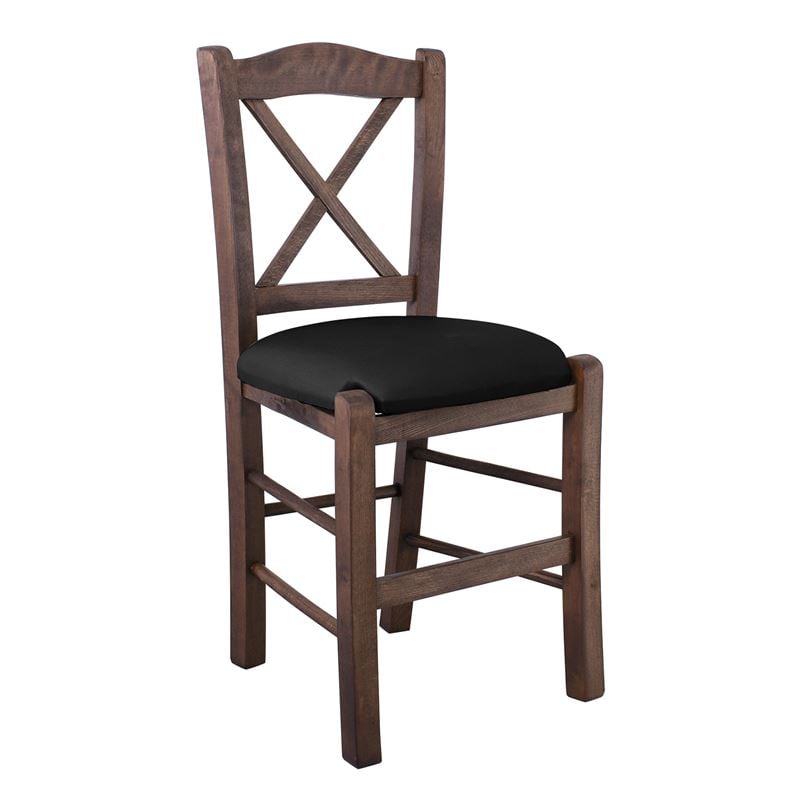 METRO Καρέκλα Οξιά Βαφή Εμποτισμού Καρυδί, Κάθισμα Pu Μαύρο