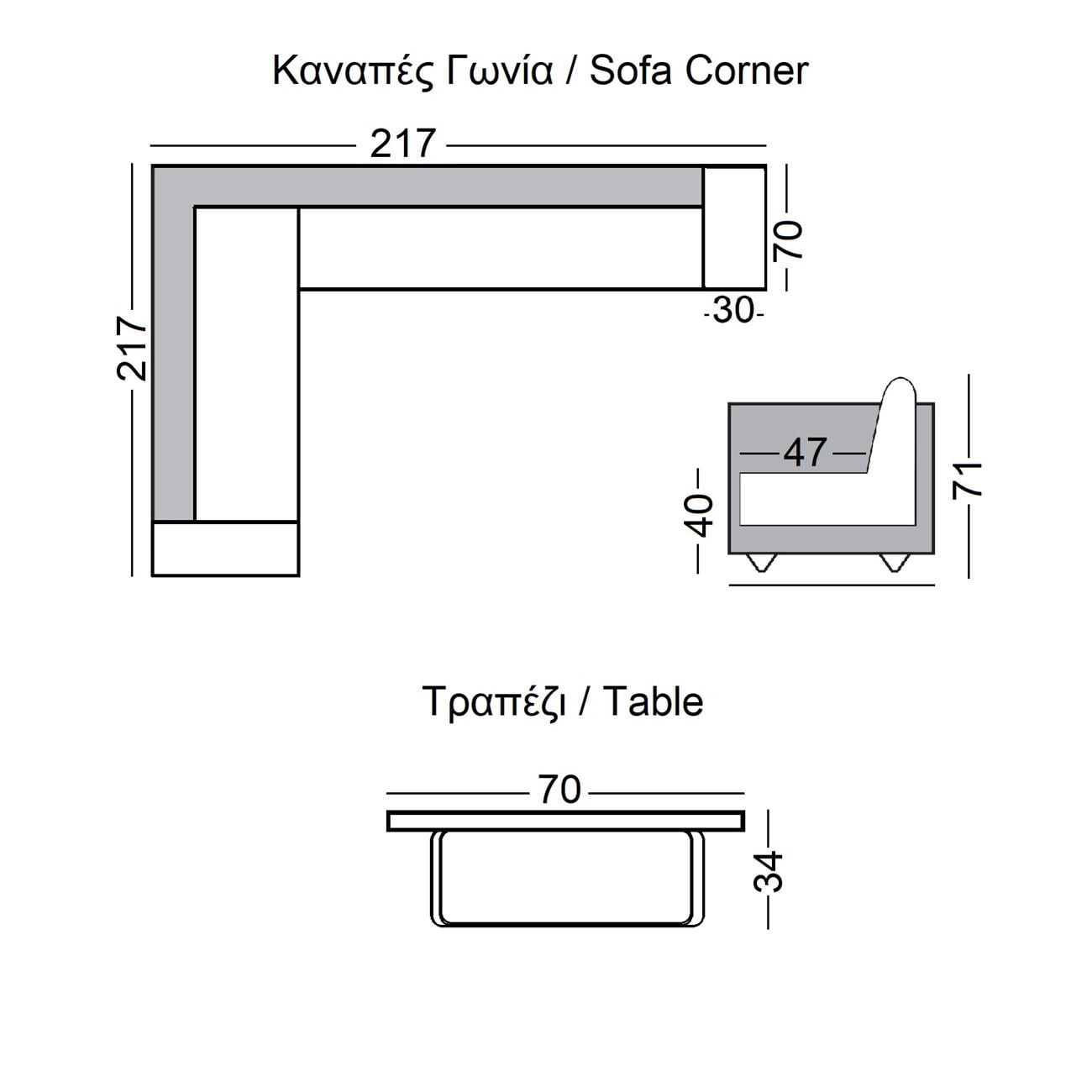 Ε6867,2 MEXICO Set (Καναπές Γωνία+Τραπεζάκι) Alu Ανθρακί/Μαξιλάρια Γκρι