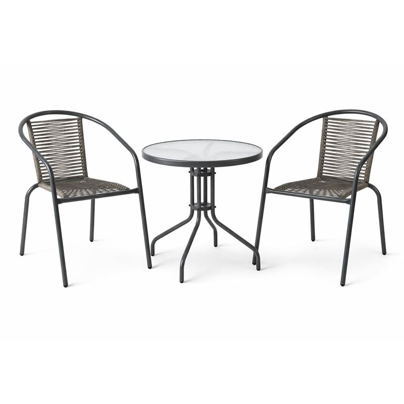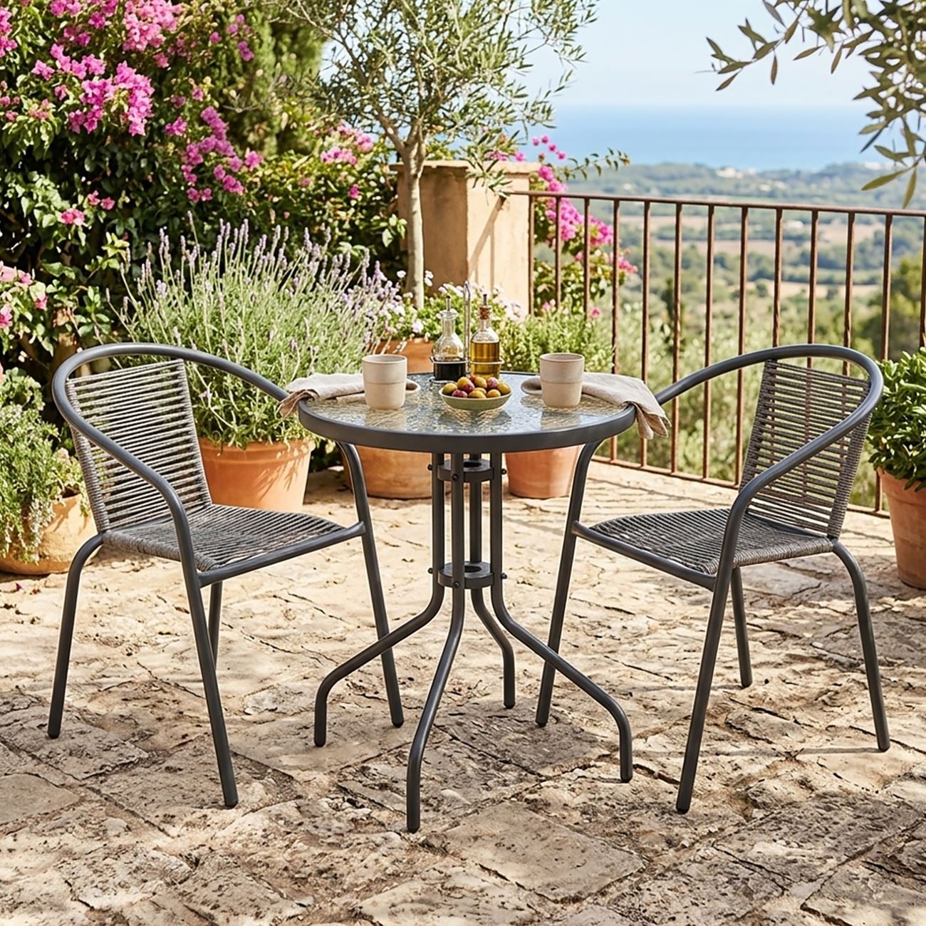MIKA Set Κήπου – Βεράντας: Τραπέζι + 2 Πολυθρόνες Μέταλλο Βαφή Ανθρακί, PE Rattan Γκρι