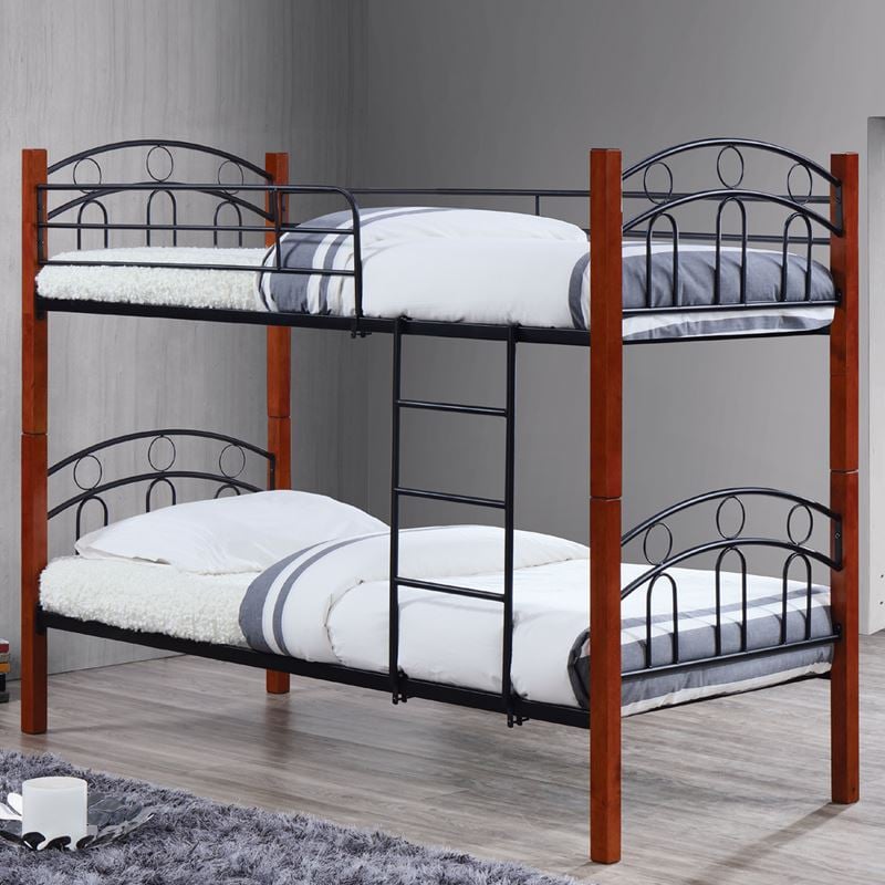 Ε8071 NORTON Kρεβάτι/Κουκέτα 90x190cm Mεταλ.Μαύρο/Ξύλο Καρυδί