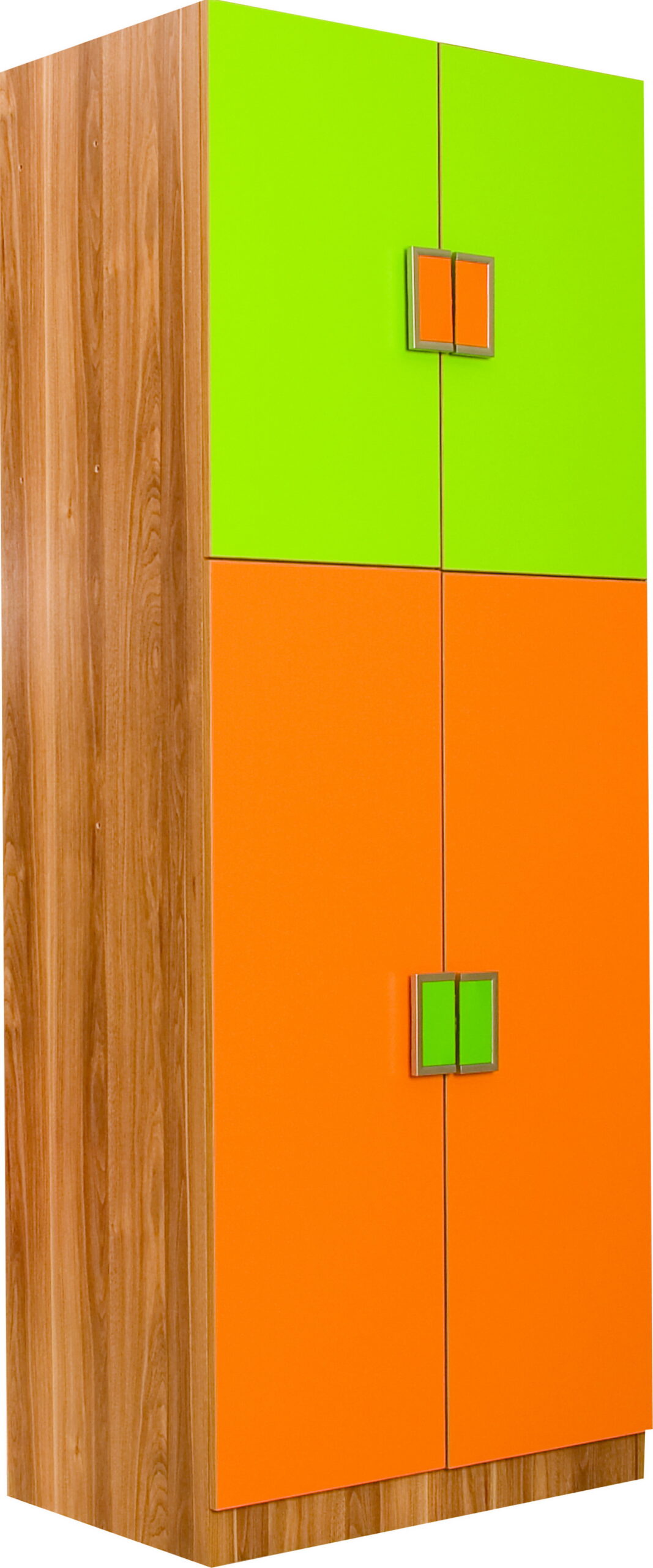 Παιδική Ντουλάπα Poligon P-202 σε χρώματα πράσινο , καφέ και πορτοκαλί.