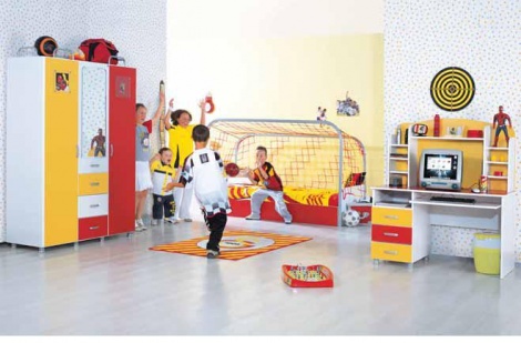 Παιδικό Δωμάτιο Smart Group Room 28 με θέμα το ποδόσφαιρο σε χρώματα κίτρινο με κόκκινο.