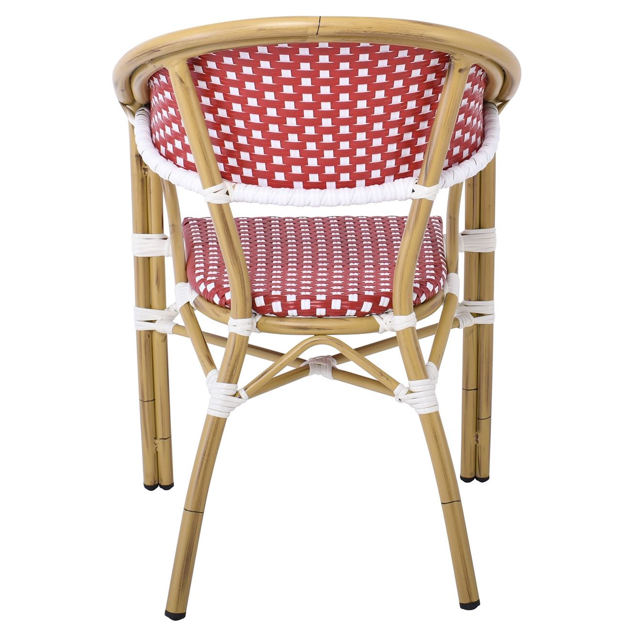 PARIS Πολυθρόνα Bistro Αλουμίνιο Φυσικό, Wicker Άσπρο – Κόκκινο, Στοιβαζόμενη