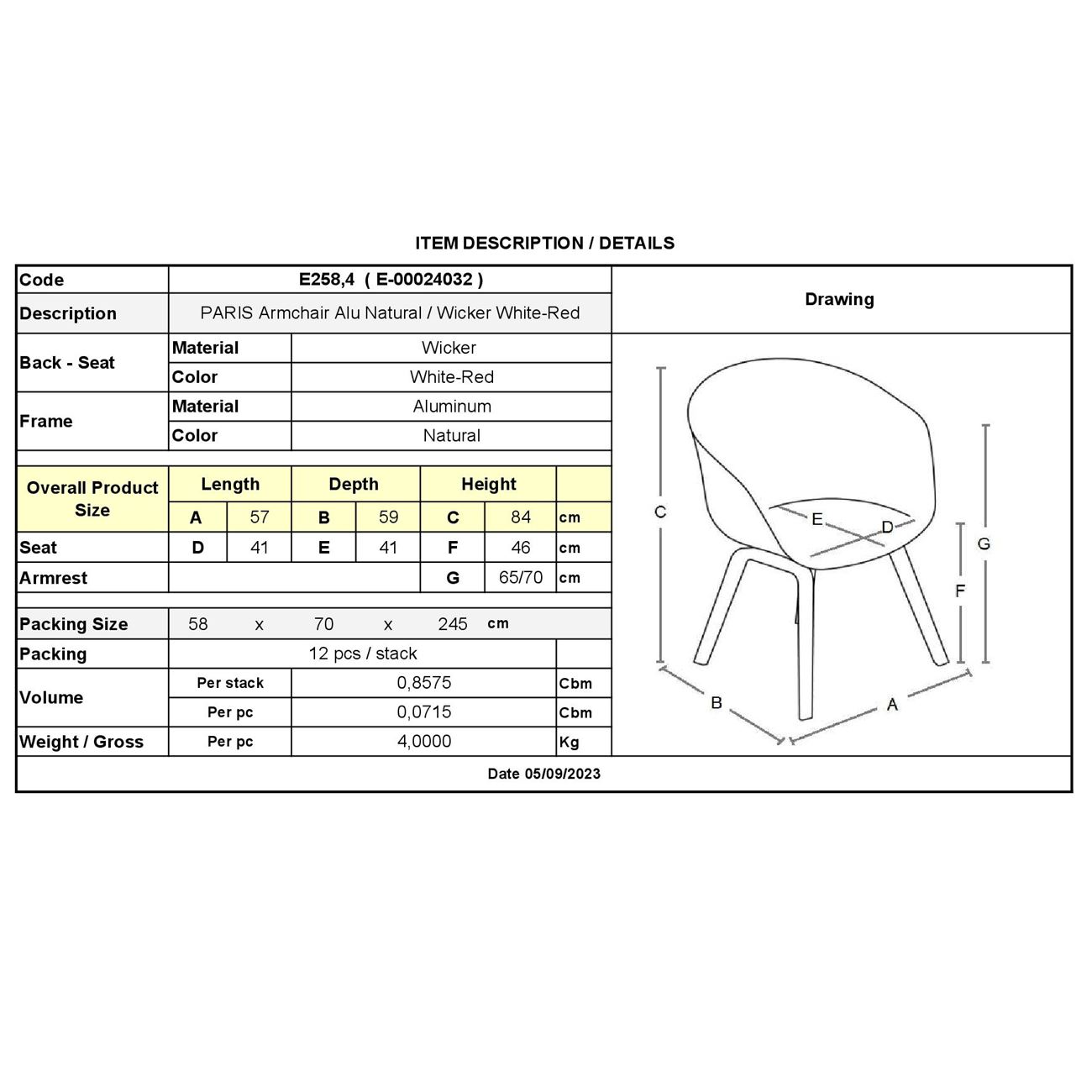 Ε258,4 PARIS Πολυθρόνα Alu Φυσικό/Wicker Άσπρο-Κόκκινο