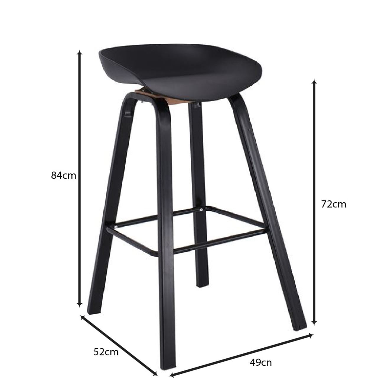 PENT Σκαμπό Bar, Μέταλλο Βαφή Μαύρο, PP Μαύρο