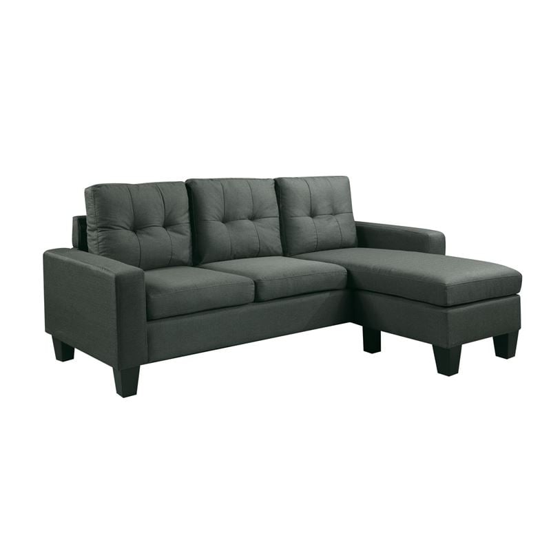 PORTO Καναπές Σαλονιού Καθιστικού, Αναστρέψιμη Γωνία Ύφασμα Σκούρο Γκρι