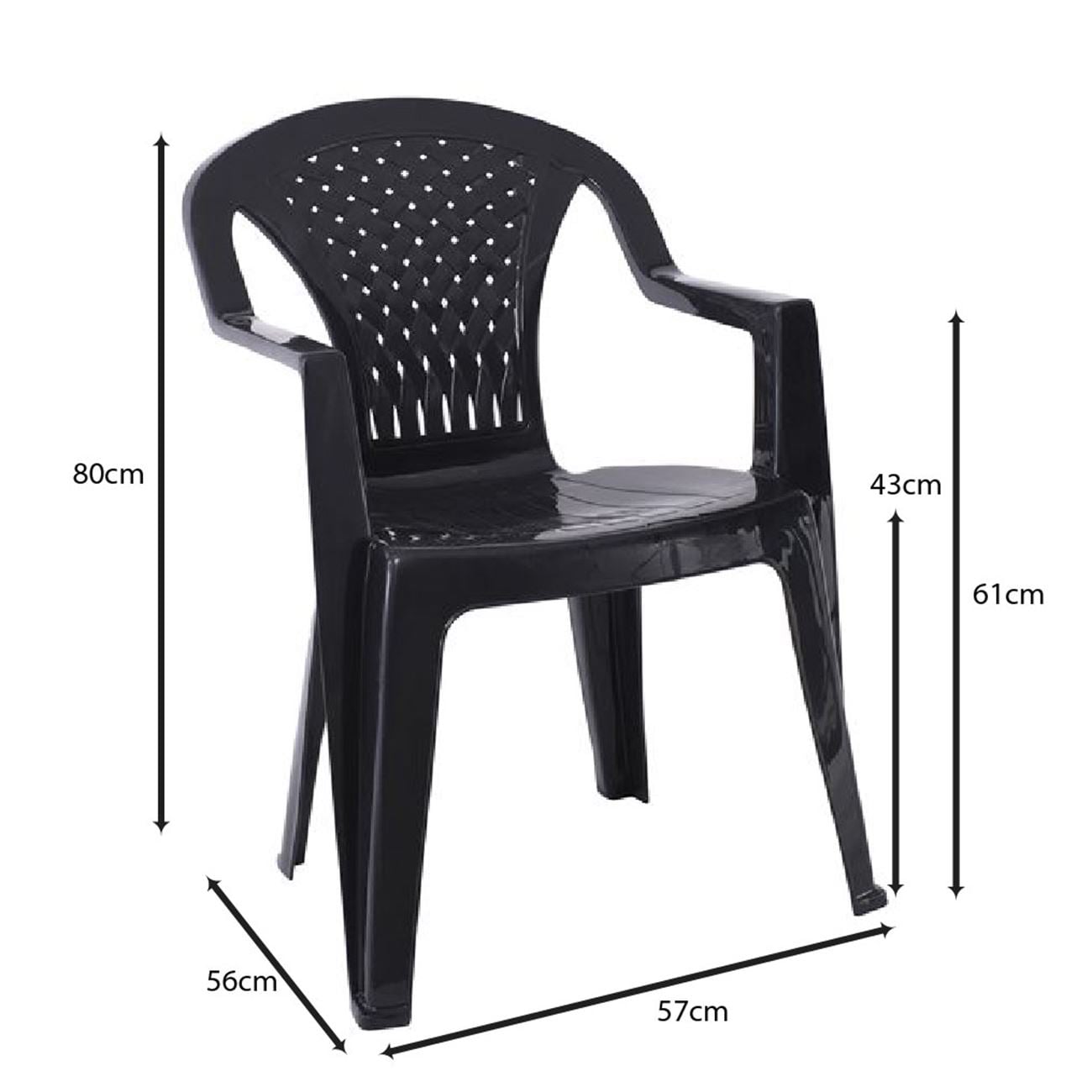 PORTOFINO Πολυθρόνα Τραπεζαρίας Κήπου – Βεράντας, PP Ανθρακί, Στοιβαζόμενη