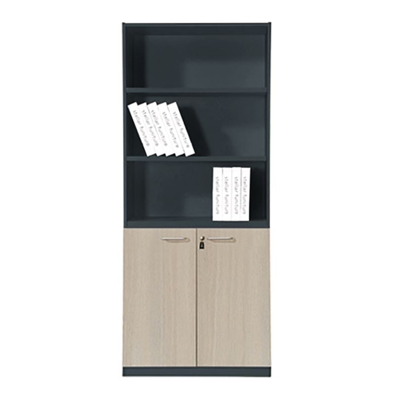 PROGRESS Βιβλιοθήκη Γραφείου, 3 Ράφια, Ντουλάπι Δίφυλλο με 2 Ράφια, Απόχρωση Elm-Sky Grey