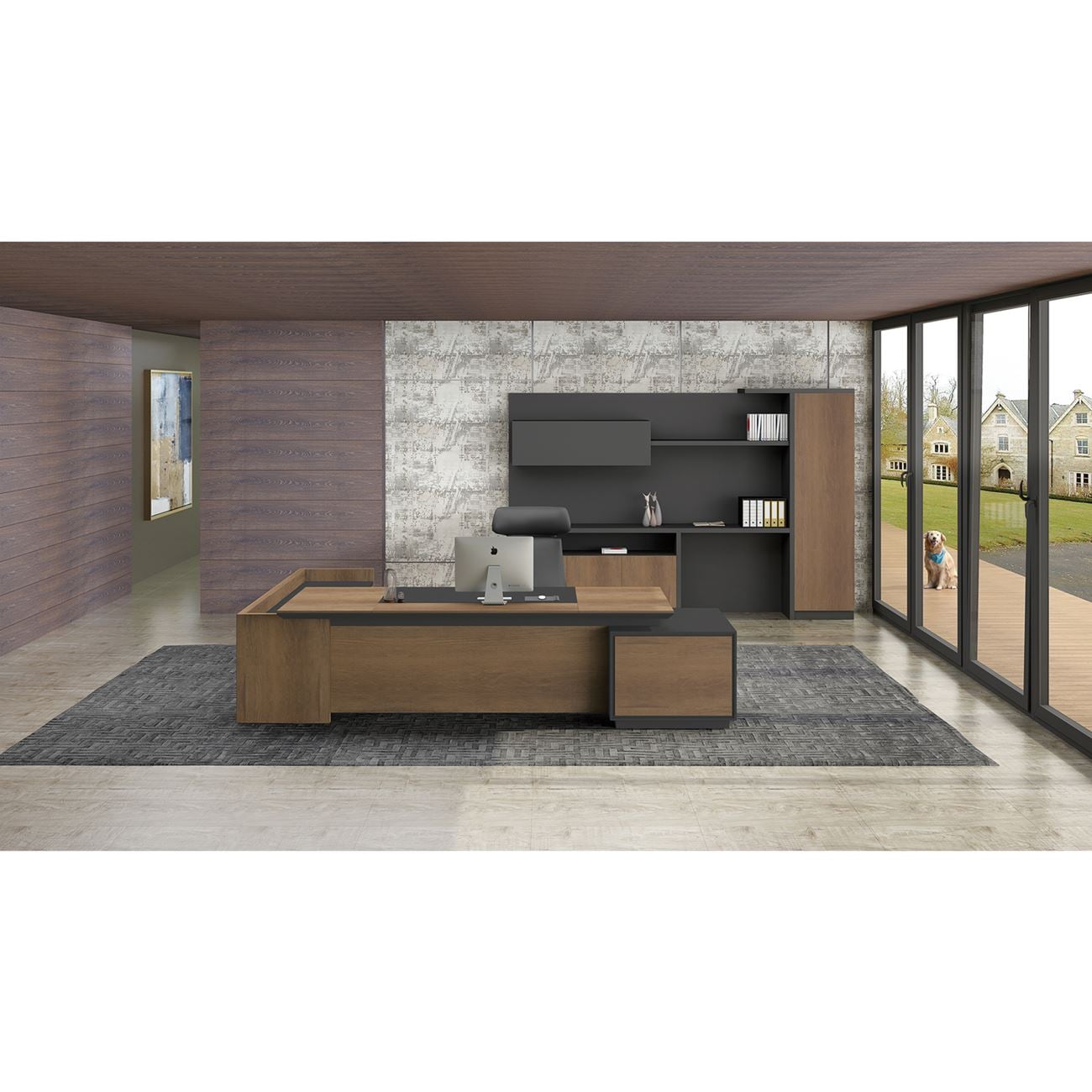 PROLINE Γραφείο Δεξιά Γωνία Απόχρωση Καρυδί Δρυς – Μαύρο