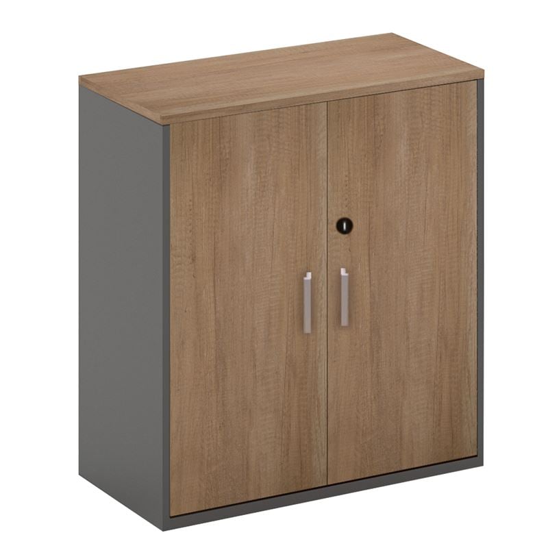 PROLINE Ντουλάπι Γραφείου Χαμηλό, Δίφυλλο, 2 ράφια, Απόχρωση Καρυδί Δρυς – Μαύρο