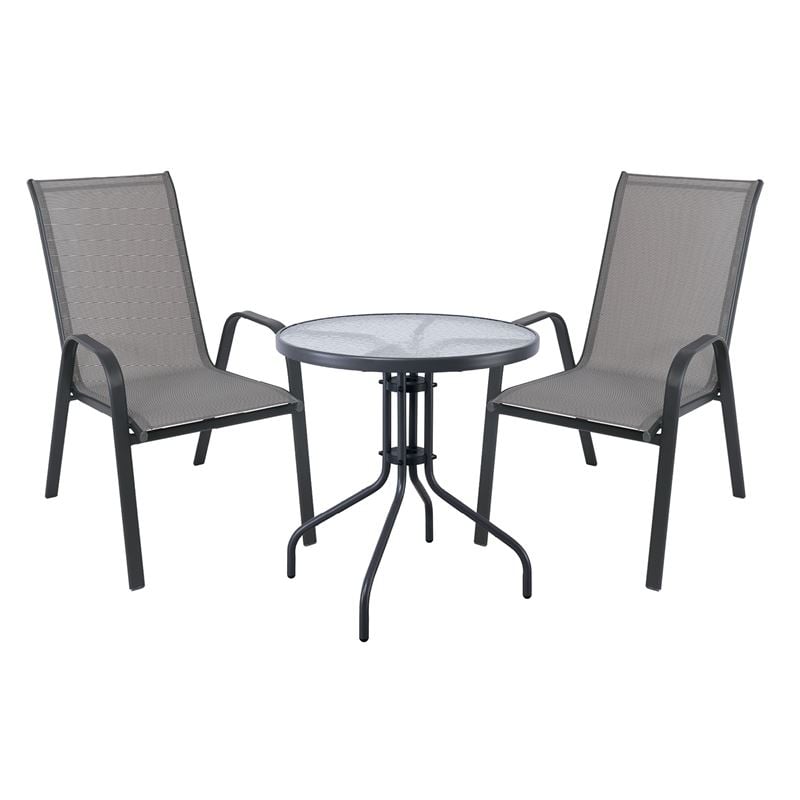 RIO Set Κήπου – Βεράντας: Τραπέζι + 2 Πολυθρόνες Μέταλλο Βαφή Ανθρακί, Textilene Γκρι