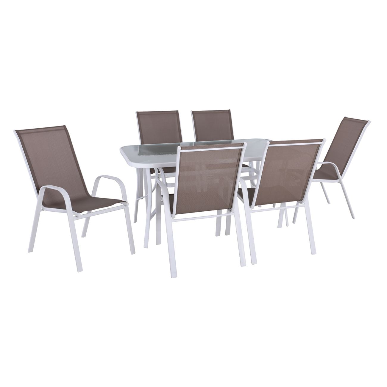 RIO Set Τραπεζαρία Κήπου Άσπρο Μέταλλο,Textilene Cappuccino: Τραπέζι+6 Πολυθρόνες