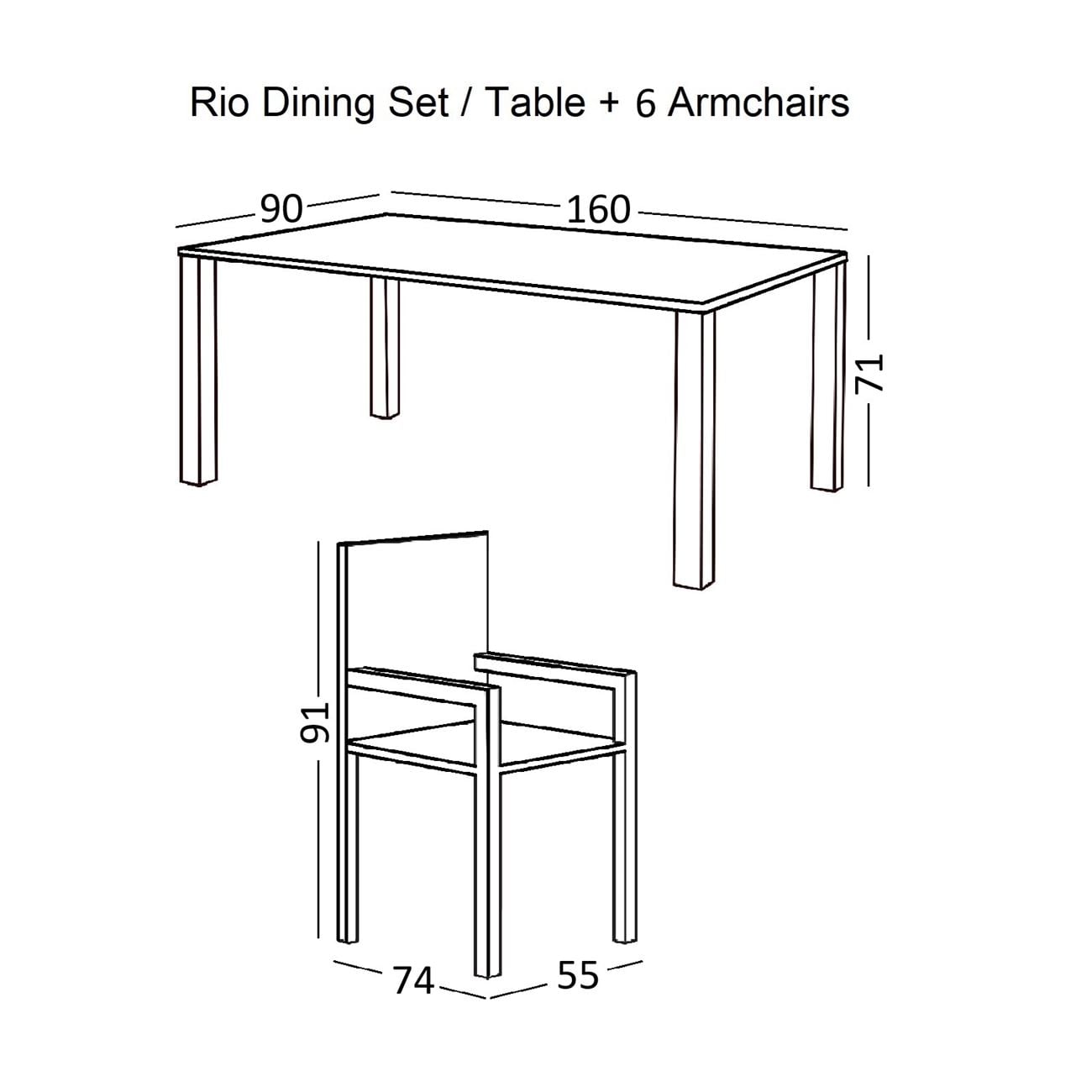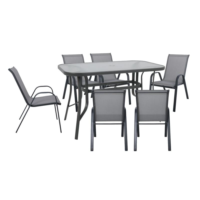 RIO Set Τραπεζαρία Κήπου Μέταλλο Ανθρακί, Textilene Γκρι: Τραπέζι + 6 Πολυθρόνες