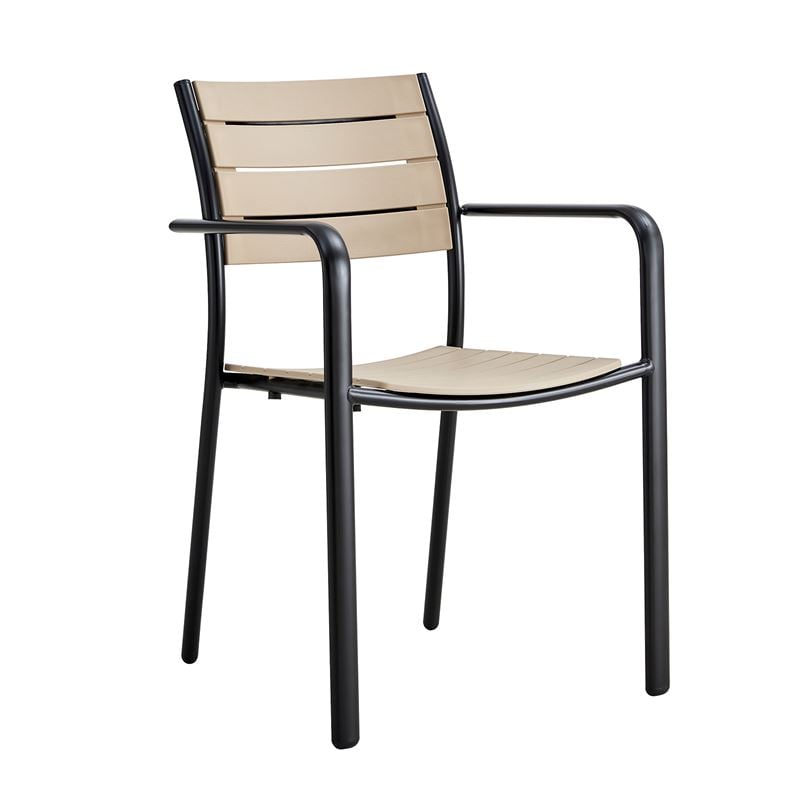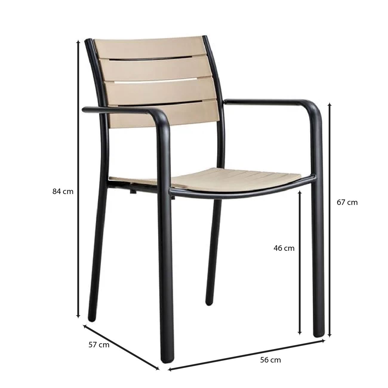 SAGA Πολυθρόνα Στοιβαζόμενη, Μέταλλο Βαφή Μαύρο, PP-UV Tortora