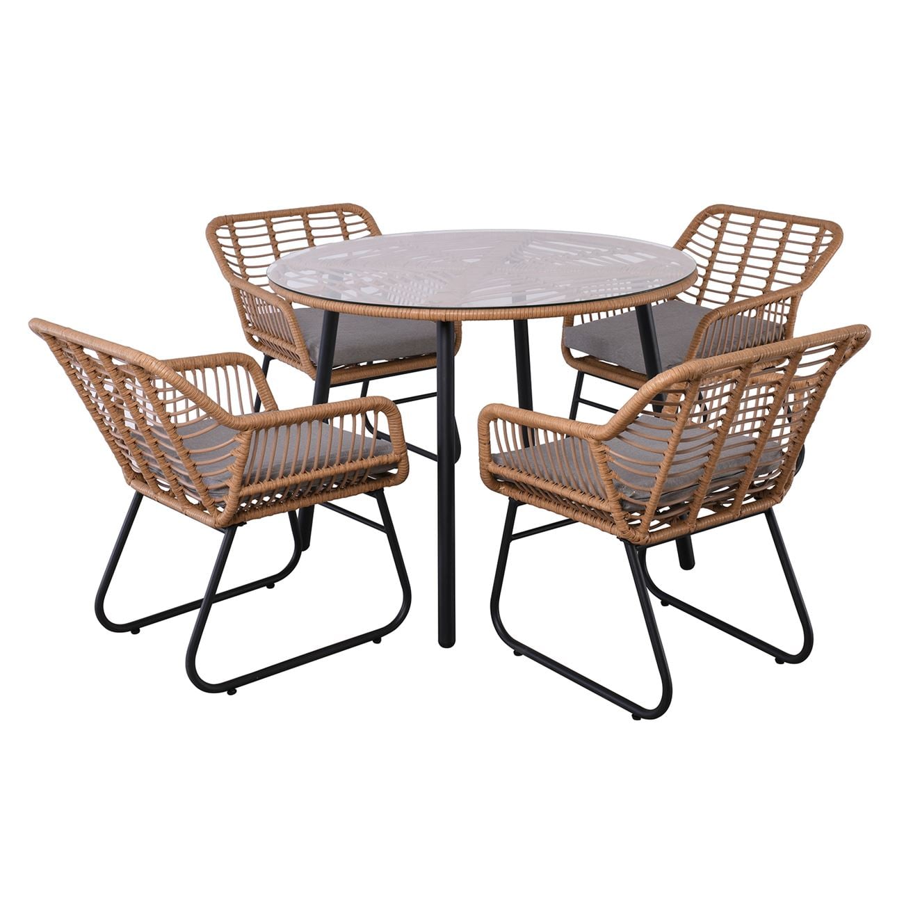Ε2802 SALSA Dining Set (Τρ.Φ100+4 Πολυθρ.) Μετ.Μαύρο/Wicker Φυσικό, Μαξ.Γκρι