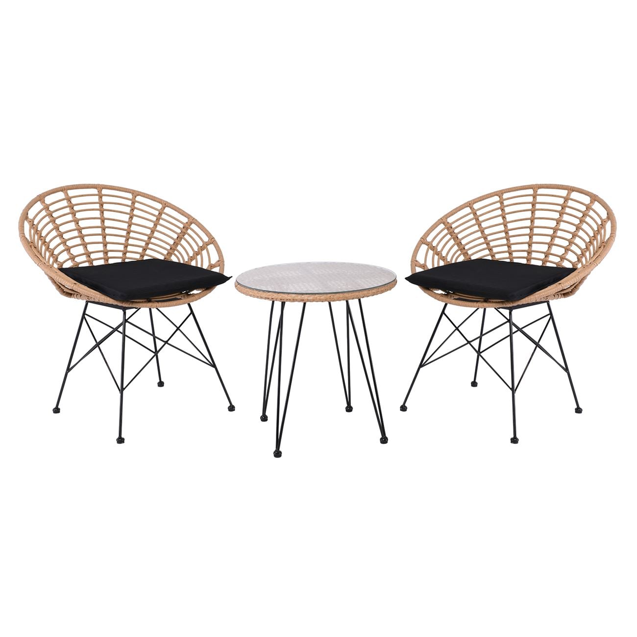 SALSA Coral Coffee Set Κήπου Μέταλλο Μαύρο – Γυαλί – Wicker Φυσικό: Τραπεζάκι+2 Πολυθρόνες
