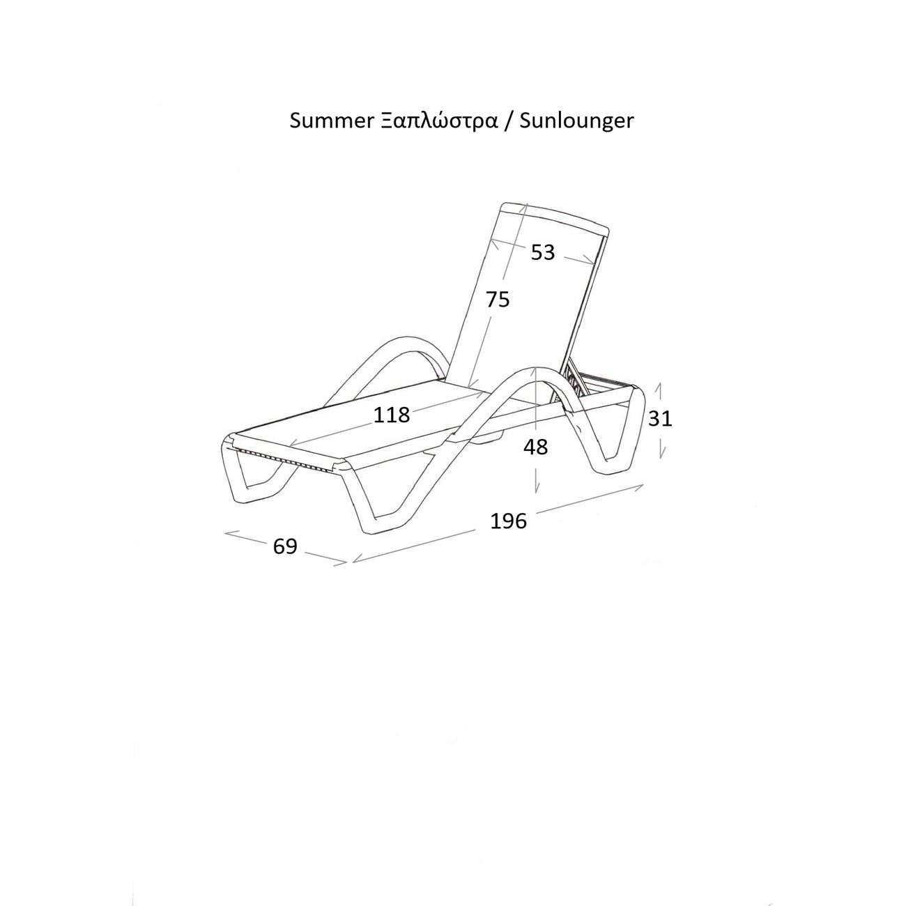 SUMMER K/D Ξαπλώστρα με μπράτσα Αλουμίνιο Ανθρακί, PP Άσπρο – Textilene Γκρι