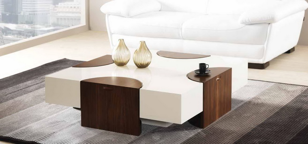 Τραπεζάκι σαλονιού erl-md-5800-a με ιδιαίτερο σχεδιασμό από ξύλο καρυδιάς και λευκή λάκα με τέσσερα βοηθητικά τραπεζάκια.