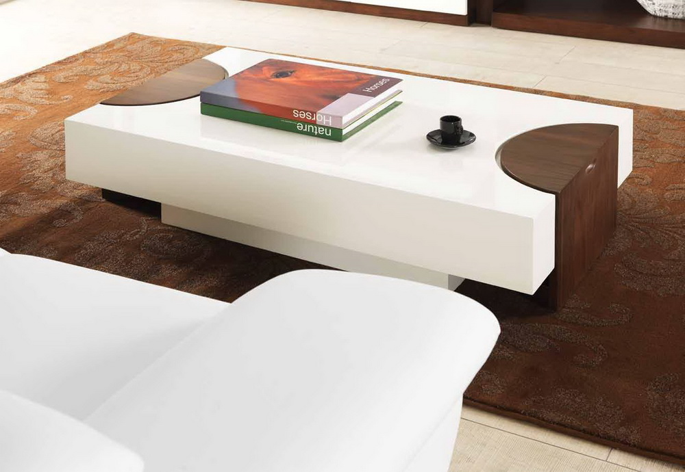 Τραπεζάκι σαλονιού ERL-MD-5900-A – Λευκή λάκα και ξύλο καρυδιάς