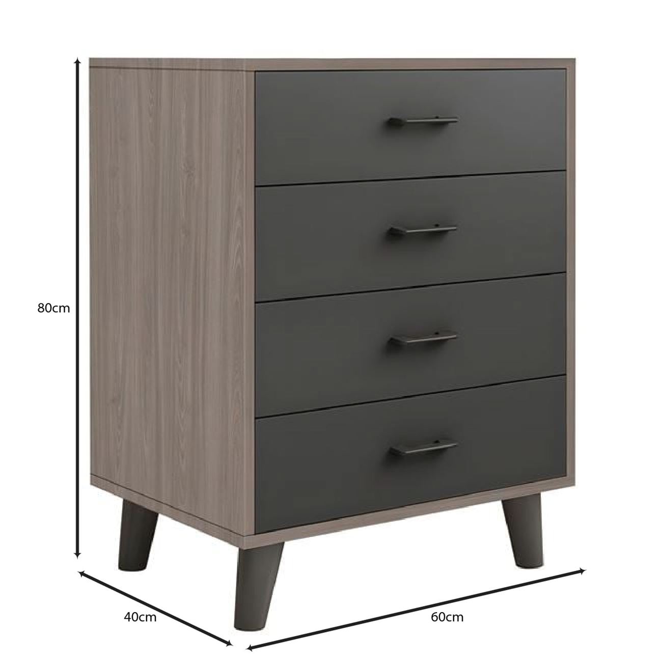 VANITY Συρταριέρα, με 4 Συρτάρια, Απόχρωση Sonoma Oak-Grey