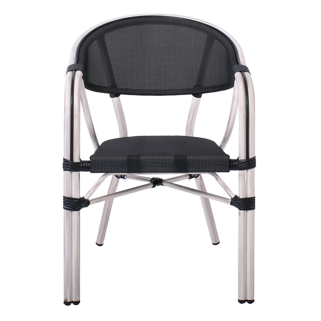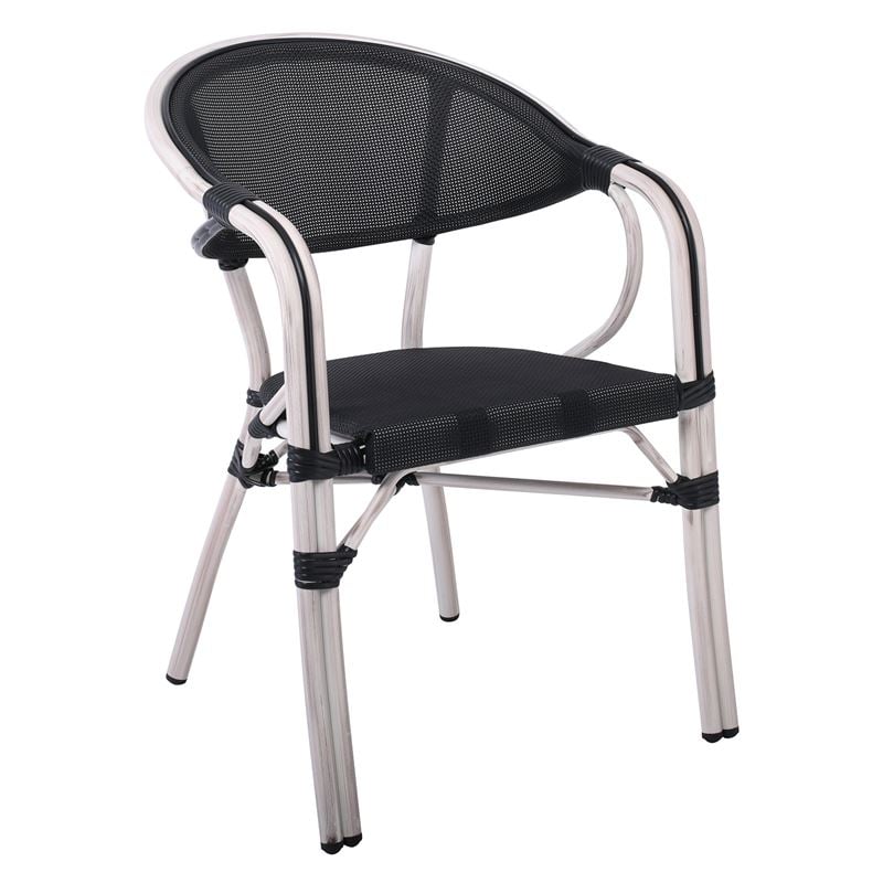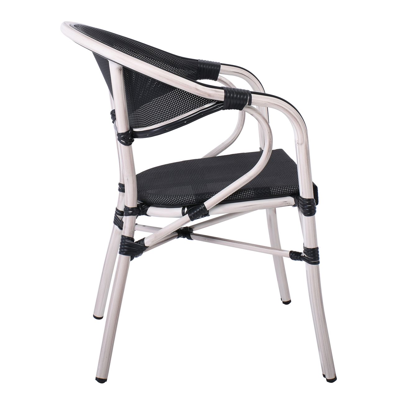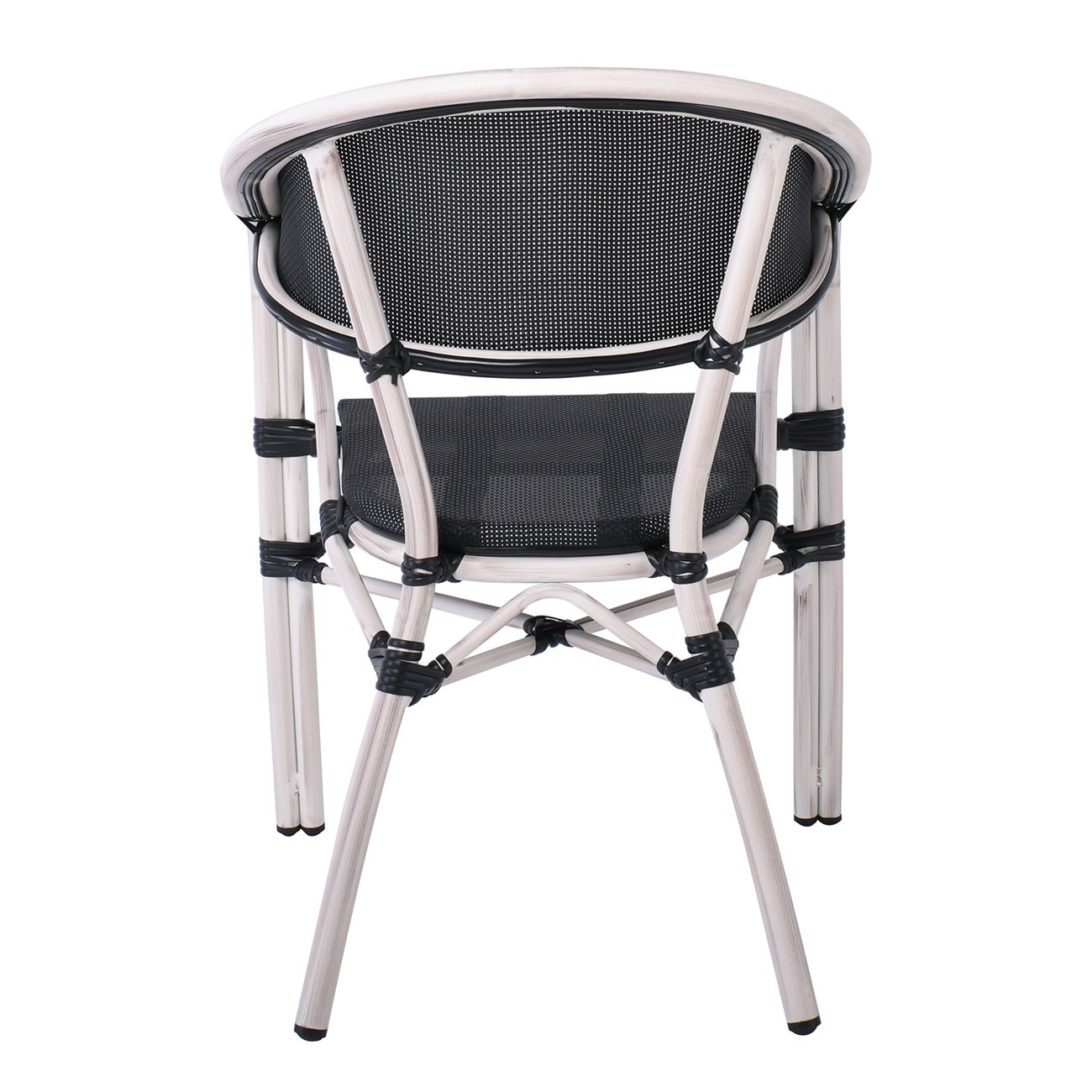 VEGERA Πολυθρόνα Dining Αλουμίνιο Βαφή Antique White Textilene Μαύρο, Στοιβαζόμενη