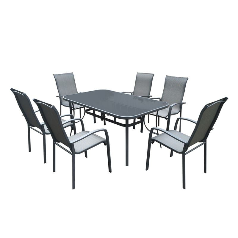 Ε272 VERONA Set(Τραπ.160×96+6 Πολ) Μετ.Ανθρακί/Silk Screen/Textil.Γκρι