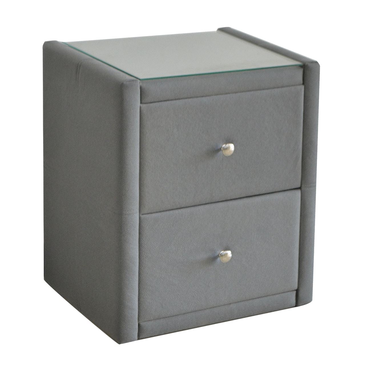 WILTON Κομοδίνο Ύφασμα Γκρι με Προστατευτικό Γυαλί Επιφάνειας
