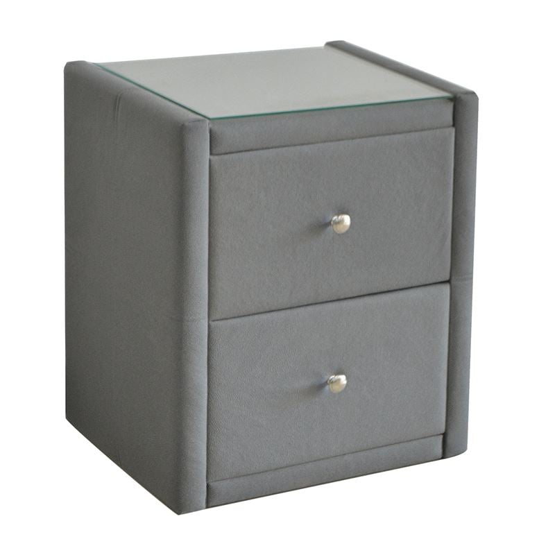 Ε8057,F2 WILTON Κομοδίνο (με γυαλί) 46x41x57cm Ύφασμα Γκρι